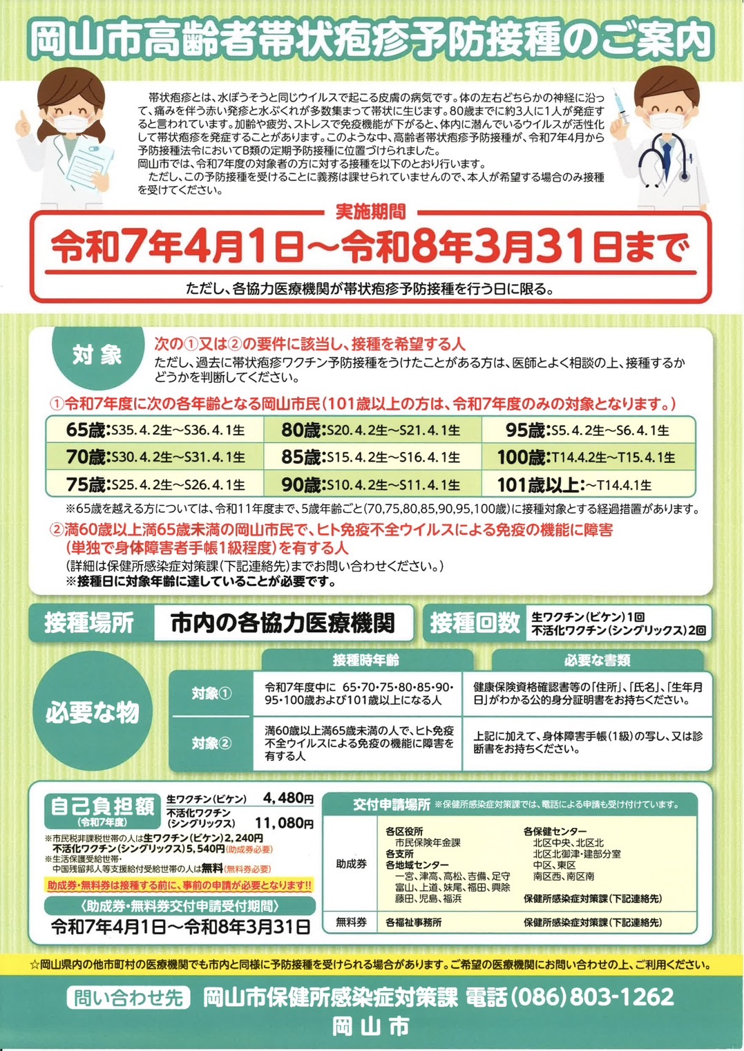 ※予防接種は帯状疱疹を完全に防ぐものではありません。